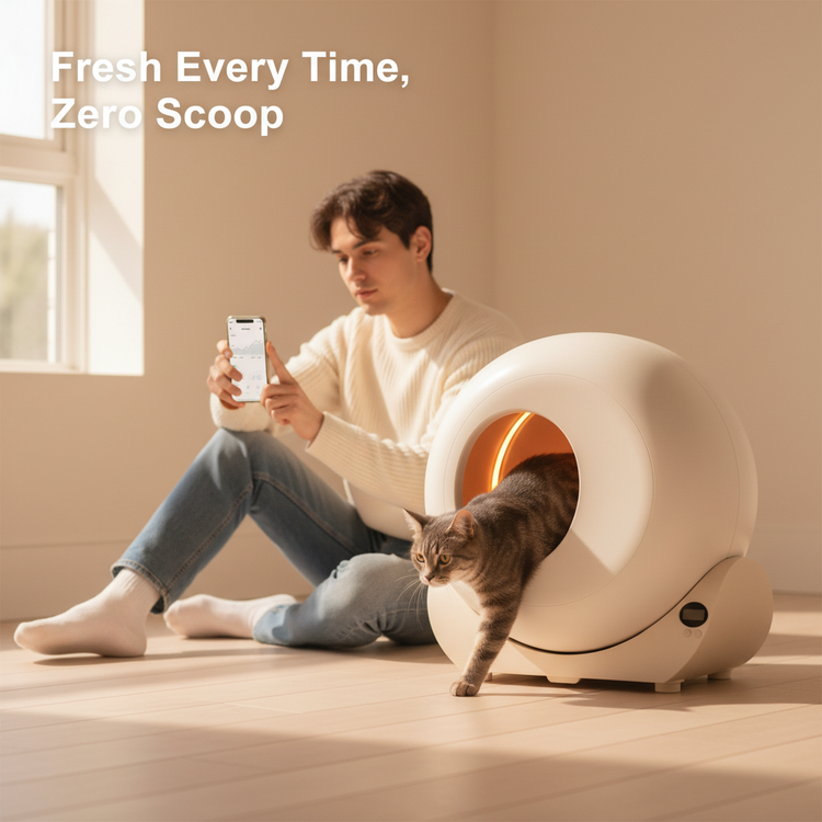 • Smart sensors detect exits and obstacles • Weight and activity tracking per cat • Low-entry, sealed disposal, and app control